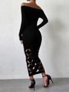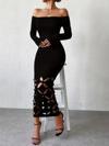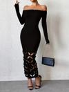 Kadın Madonna Yaka Uzun Kollu Lazer çiçek Kesim Detaylı Uzun Ithal Krep Elbise