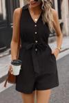 Kadın Sıfır Kollu Yakalı Düğmeli Belden Kuşaklı Kısa Keten Tulum
