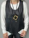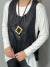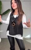 Kadın Siyah Deri Yelekli Kolye Dahil üçlü Takım