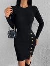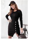 Kadın Siyah Uzun Kollu Bisiklet Yaka Yan Yırtmaç Düğme Detay Kısa Kaşkorse Elbise