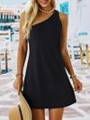 Kadın Tek Omuz Askılı Krep Mini Elbise