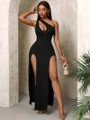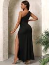 Kadın Tek Omuzdan Açık Damla Detaylı Yırtmaç Detaylı Uzun Janjan Krep Elbise