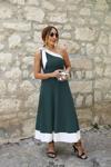 Kadın Tek Omuzu Açık Omuzlardan Kurdela Detaylı çift Renkli Ithal Krep Elbise