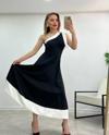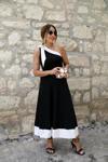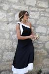 Kadın Tek Omuzu Açık Omuzlardan Kurdela Detaylı çift Renkli Ithal Krep Elbise