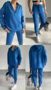 Kadın Uzun Kol V Yaka Kapüşon Detay Sweat Ve Yüksel Bel Eşofman Ikili Takım