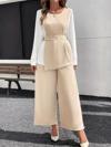 Mdbshop MDB Kadın Uzun Kollu Açık Yakalı çift Renkli Kemerli Ithal Krep Ikili Takım