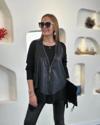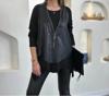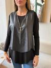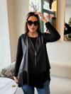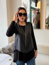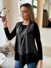 Kadın Uzun Kollu Asimetrik Kesim Viskon Bluz Ve çatlak Deri Görünümlü Yelek Ikili Takım