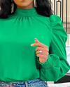 Kadın Uzun Kollu Balıkçı Yaka Arkadan Bağlamalı Omuzlardan Balon Ithal Krep Bluz