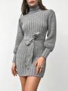 Kadın Uzun Kollu Balıkçı Yaka Beli Kuşaklı Mini Triko Elbise
