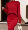 Kadın Uzun Kollu Balıkçı Yaka Bluz Ve Etek Ikili Triko Takım