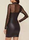 Kadın Uzun Kollu Balıkçı Yaka Tül Detaylı Mini Deri Elbise