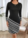 Kadın Uzun Kollu Bisiklet Yaka Desenli Dalgıç Elbise