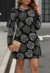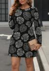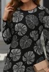 Kadın Uzun Kollu Bisiklet Yaka Desenli Kısa Krep Elbise