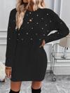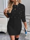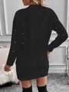 Kadın Uzun Kollu Bisiklet Yaka Desenli Triko Elbise
