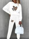 Kadın Uzun Kollu Bisiklet Yaka Kalp Desenli şardonlu üç Iplik Bluz Ve Pantolon Ikili Takım