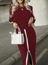 Kadın Uzun Kollu Bisiklet Yaka Kaşkorse Bluz Ve Yırtmaçlı Etek Ikili Takım