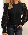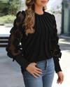 Kadın Uzun Kollu Bisiklet Yaka Kolları Tül Detaylı Nervürlü Ithal Krep Bluz