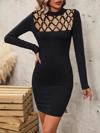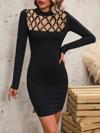 Kadın Uzun Kollu Bisiklet Yaka Lazer Kesim Inci Detay Viskon Iki Iplik Mini Boy Elbise