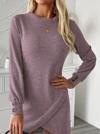 Kadın Uzun Kollu Bisiklet Yaka önden Asimetrik Kesim Detaylı Mini Yumoş Elbise