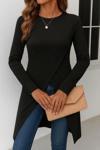 Kadın Uzun Kollu Bisiklet Yaka önden çapraz Kesim Detay Midi Viskon Bluz