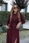 Mdbshop MDB Kadın Uzun Kollu Bisiklet Yaka önden Halka Detaylı Yırtmaçlı Uzun Viskon Iki Iplik Elbise