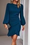 Kadın Uzun Kollu Bisiklet Yaka önden Volanlı Ithal Krep Elbise