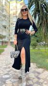 Kadın Uzun Kollu Bisiklet Yaka Yırtmaçlı Kemerli Uzun çilek Elbise
