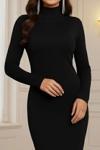 Kadın Uzun Kollu Boğazlı Midi Boy Triko Elbise (kemersiz)