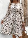 Kadın Uzun Kollu Bot Yaka Beli Lastikli Midi Süprem Elbise