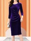 Kadın Uzun Kollu Bot Yaka Yanı Taş Detaylı Midi Kadife Elbise