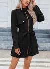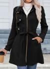 MDB Kadın Uzun Kollu Boyundan Düğmeli Fermuarlı Beli Kuşaklı Süet Ceket