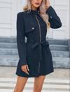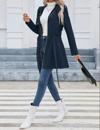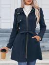 Kadın Uzun Kollu Boyundan Düğmeli Fermuarlı Beli Kuşaklı Süet Ceket