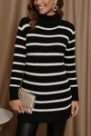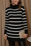 Kadın Uzun Kollu Degaje Yaka çizgili Sonya Iplik Mini Boy Triko Elbise (kemersiz)