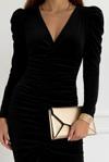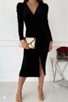 Kadın Uzun Kollu Derin Kruvaze Yakalı önden Büzgülü Yırtmaç Detaylı Kadife Midi Elbise