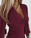 Kadın Uzun Kollu Derin V Yakalı önden Büzgülü Sandy Bluz