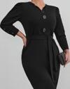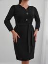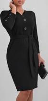 Kadın Uzun Kollu Düğme Detaylı Kendinden Kemerli Ithal Krep Elbise