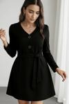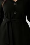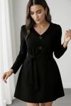 Kadın Uzun Kollu Düğme Detaylı Kendinden Kemerli Ithal Krep Elbise