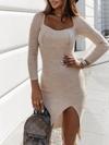 Kadın Uzun Kollu Geniş Yaka Yırtmaç Detay Mini Boy Triko Elbise