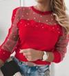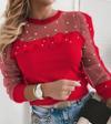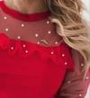 Kadın Uzun Kollu Inci Detaylı Tüllü Viskon Bluz