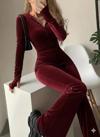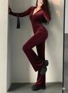 Kadın Uzun Kollu Kapşonlu Fermuarlı Kadife Tulum