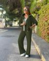 Mdbshop MDB Kadın Uzun Kollu Kapşonlu Onu şerit Detaylı Fermuarlı Viskon Iki Iplik Bluz Ve Pantolon Ikili Ta