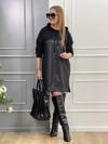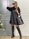 Kadın Uzun Kollu Kapüşon Ve Deri Detay Diz üstü Elbise