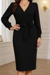 Kadın Uzun Kollu Kruvaze Yaka Belden Kuşaklı Midi Ithal Krep Elbise