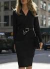 Kadın Uzun Kollu Kruvaze Yaka Janjan Krep Midi Elbise