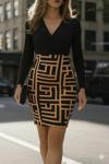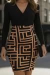 Kadın Uzun Kollu Kruvaze Yaka Labirent Desen Dalgıç Elbise