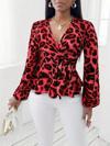 MDB Kadın Uzun Kollu Kruvaze Yakalı Belden Kuşaklı Leopar Desenli Süprem Bluz