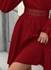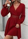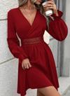 Kadın Uzun Kollu Kruvaze Yakalı Dantelli Fermuar Detaylı Mini Ithal Krep Elbise