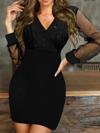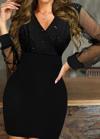 Kadın Uzun Kollu Kruvaze Yakalı Taşlı Mini Ithal Krep Elbise
