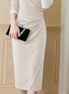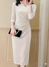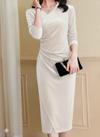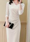 Kadın Uzun Kollu Kruvaze Yakalı Yandan Büzgülü önden çapraz Detaylı Midi Kadife Elbise