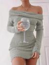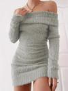Kadın Uzun Kollu Omuzlardan Açık Kısa şardonlu Triko Elbise